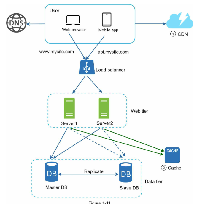 شکل 1-11 طراحی پس از افزودن CDN و Cache را نشان می دهد.