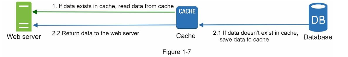 لایه کش یک لایه ذخیره سازی داده موقت است که نسبت به پایگاه داده بسیار سریعتر است. مزایای داشتن یک لایه کش جداگانه شامل بهبود عملکرد سیستم، کاهش بار کاری پایگاه داده و قابلیت مقیاس پذیری جداگانه برای لایه کش است. شکل 1-7 نشان دهنده نحوه یک نصب ممکن از یک سرور کش است: